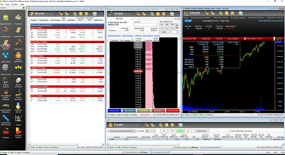 If you are seeking one of the best platforms for futures trading, we typically recommend Rithmic R|Trader Pro. At Discount Trading, we are able to offer this platform to our clients with Ultra-Low margins for free. If you want the lowest margin rates offered at Discount, this is the platform for you. Multi-Monitor Support - Pull out windows onto other monitors including charts and price ladders. Amazing charts, coupled with a fantastic Price Ladder - DOM and unfiltered direct access market data, make Rithmic an excellent choice for many different types of traders. Bracket Orders and very simple to use and implement. One click trading from charts and a price ladder is available. View all of your performance from a performance analyzing page.