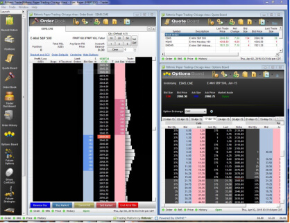 Market depth, price action, and simple order entry are all available through the Order Book. Bracket order templates, OCO orders, and other exit and entry strategies are also configurable via the Order Book - Price Ladder - DOM windows.