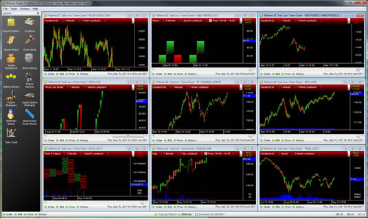 R Trader Pro includes a charting package with built-in studies, drawing tools, annotation tools, and configurable options for bar types, timeframes, and the amount of data to view on a single chart.